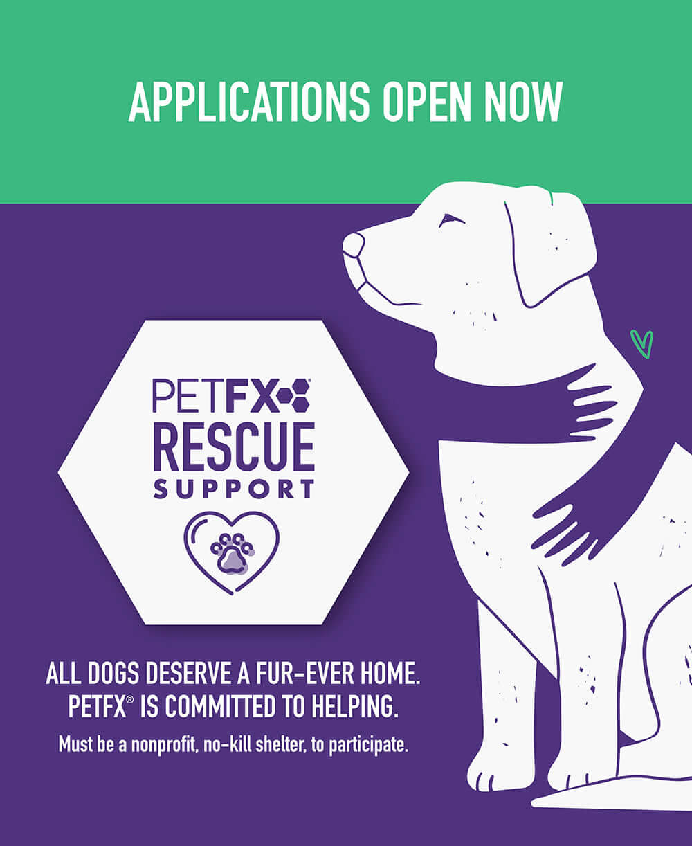 Starting in April 2022, PetFX® will be selecting a no kill shelter to partner with. Every month PetFX® will be gibing back to organizations in need.