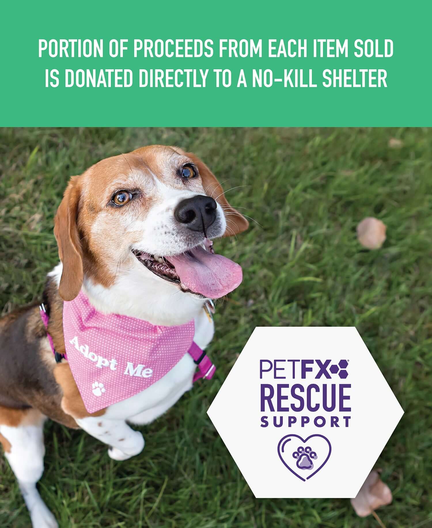 We are taking initiatives nationwide to give back in a new way. Each month, we send PetFX® product bundle’s to adoption & rescue centers across the country - this not only shares the benefits of our products, but also provides additional resources to struggling establishments.