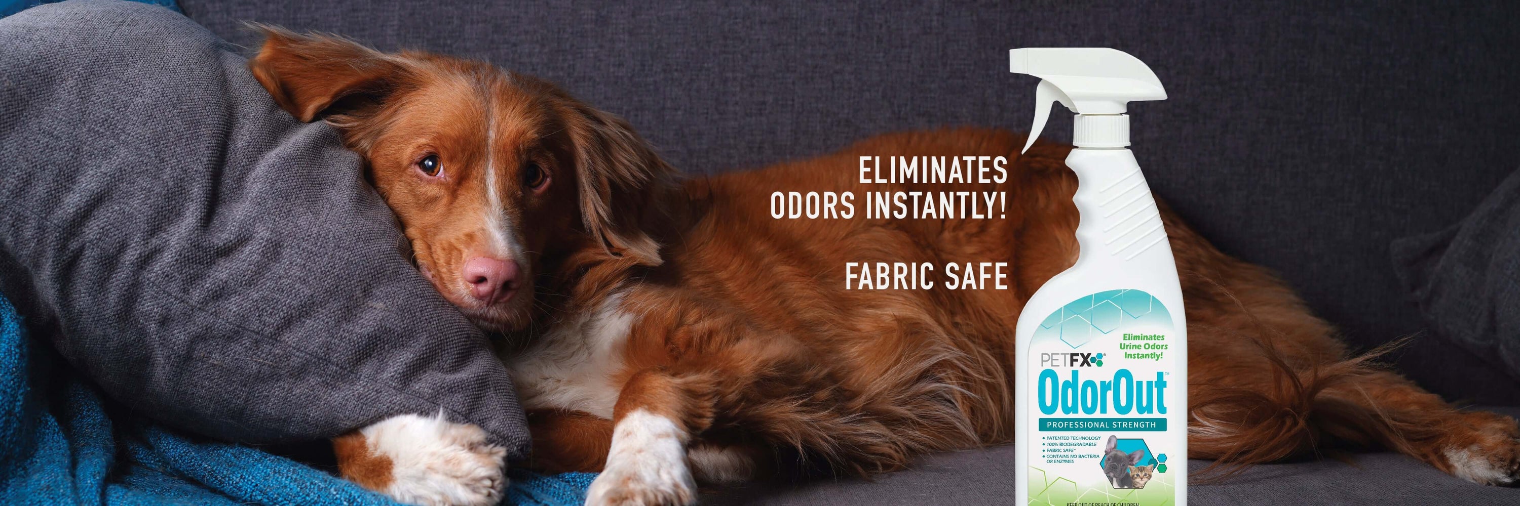 Eliminate pet odors instantly with OdorOut®. Biodegradable, fabric safe, contains no bacteria or enzymes.