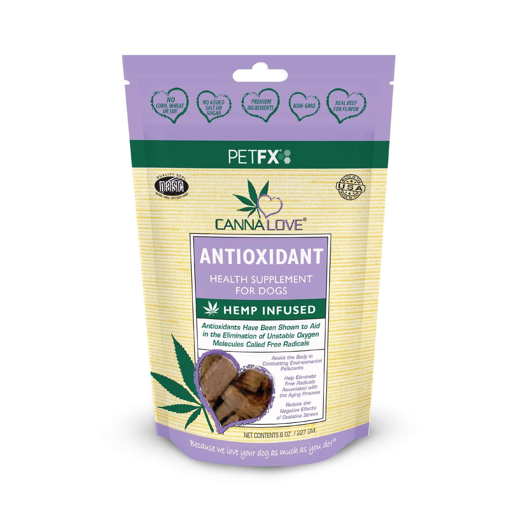 Delivers a blend of five powerful antioxidant agents to aid in helping protect against cell damage caused by free radicals found throughout your dog's body.