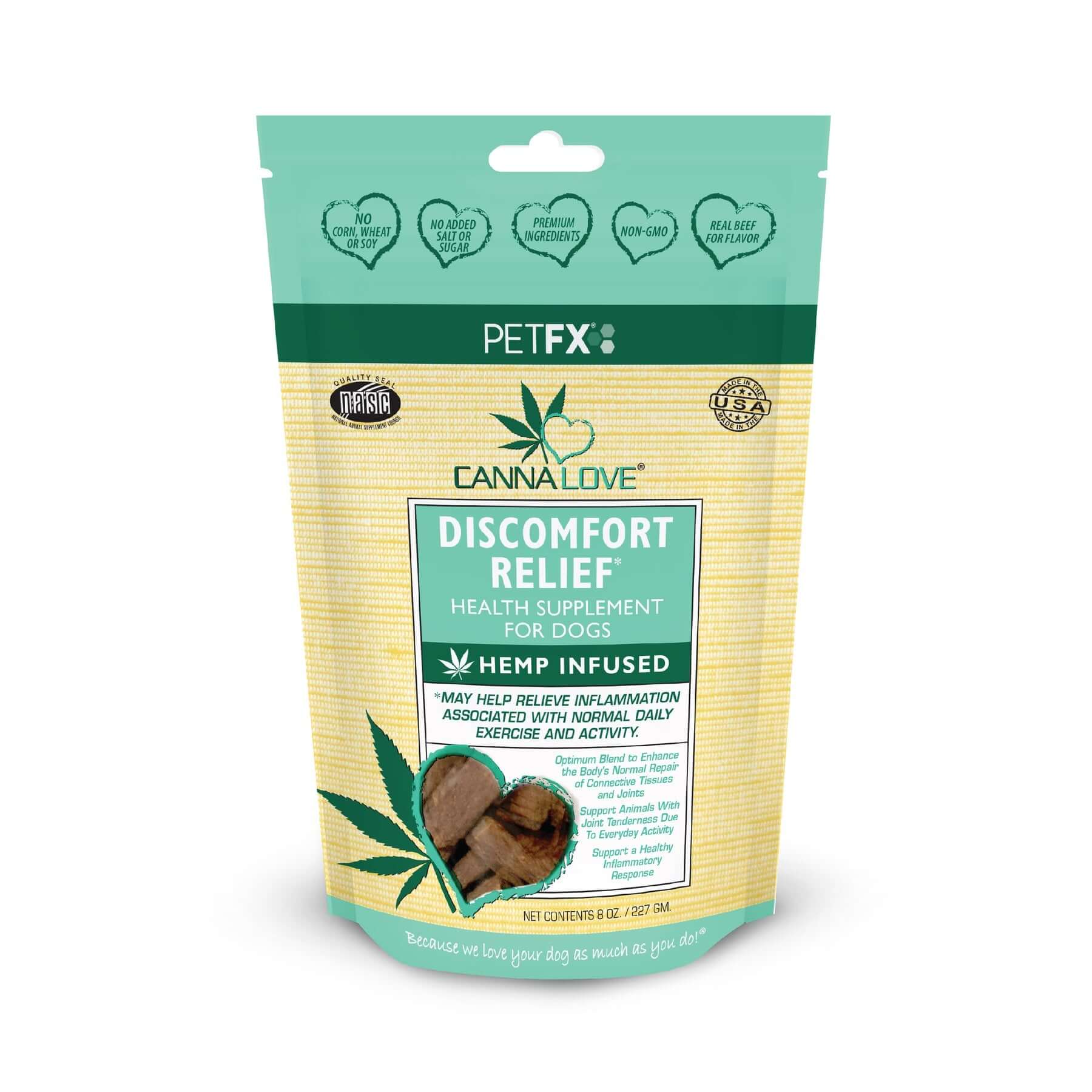 Discomfort Relief Supplement Sticks feature a unique proprietary combination of Type-II collagen, Taurinol® taurine ester, ginger, and yucca. This unique blend works together to help maintain your dog’s normal inflammatory response and immune-modulatory actions. Using this product can aid your pet in sustaining long-term health, helping your dog live a comfortable life.